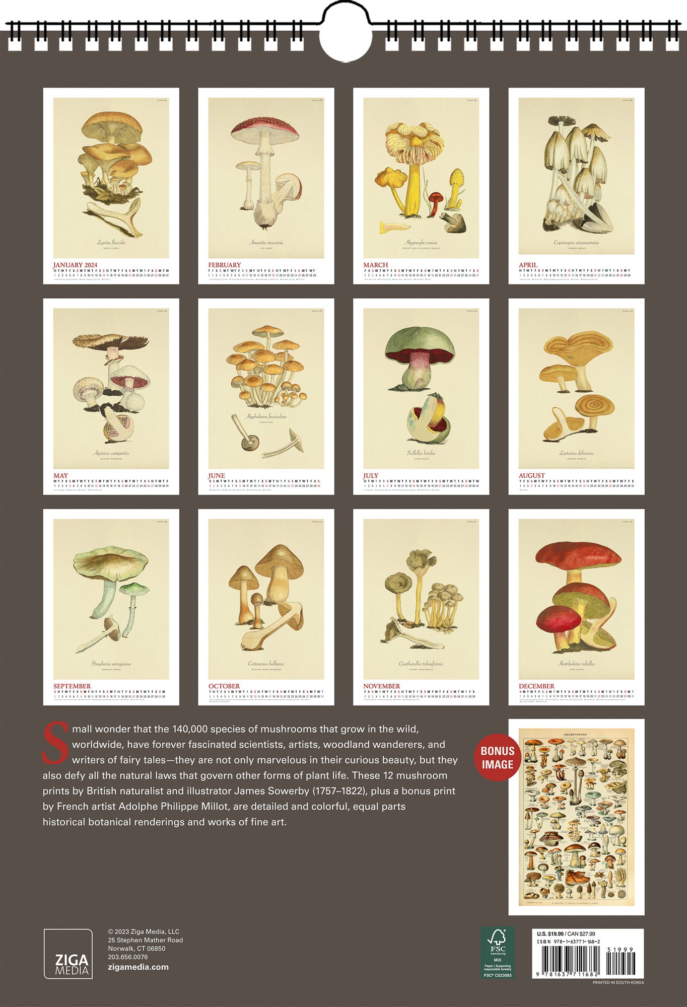 Mushroom Oversize Wall Calendar 2025, 13.38” x 19” Spiral Bound