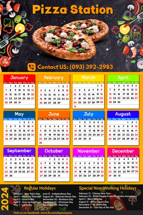 Pizza 2025 Wall Calendar ID:W23091 Etsy
